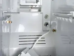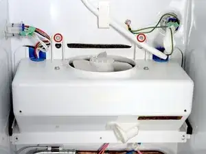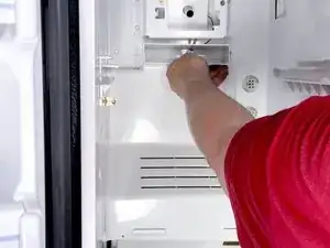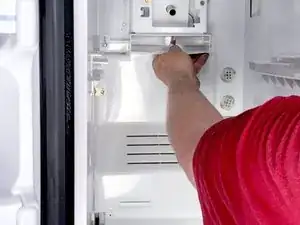 Используйте головку на 1/4" чтобы ослабить или удалить винты, крепящие корпус вентилятора к задней стенке морозильной камеры.
