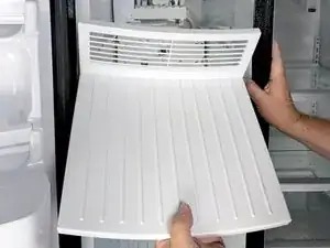 Поднимите правый край полки, чтобы освободить её от защёлок, которые её крепят.