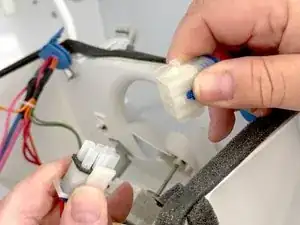 Сожмите фиксирующие защёлки, чтобы освободить разъём, и разъедините его, чтобы отключить узел вентилятора испарителя.