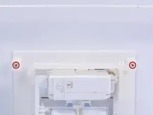 Отвёрткой Phillips отвинтите винты, крепящие лёдогенератор к верхней части отсека морозильной камеры.