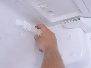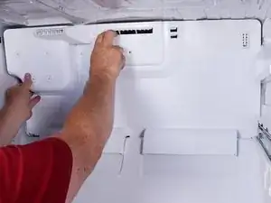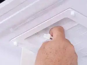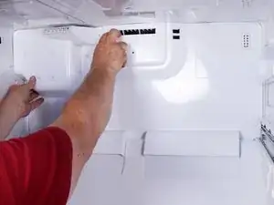 Сожмите заднюю часть крышки воздушного возврата, чтобы освободить её от стены морозильной камеры.