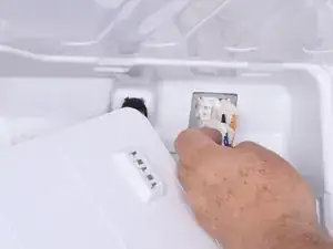 Сожмите разъём лёдогенератора, чтобы освободить его, и потяните прямо, чтобы отсоединить.