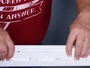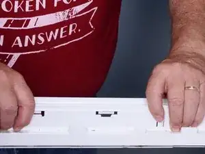 Используйте палец или плоскую отвёртку, чтобы нажать на две защёлки на правой крышке направляющей ящика.