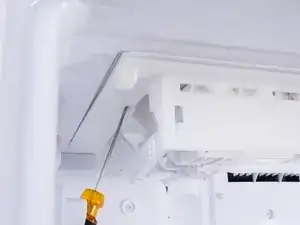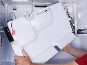 Не пытайтесь полностью снять крышку испарителя — она всё ещё подключена к холодильнику несколькими проводами.
