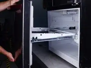 Сдвиньте нижнюю левую направляющую, чтобы получить доступ к разъёму дверного выключателя.