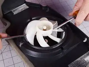 Вставьте две плоские отвертки через верхнее отверстие вентилятора в корпусе вентилятора.