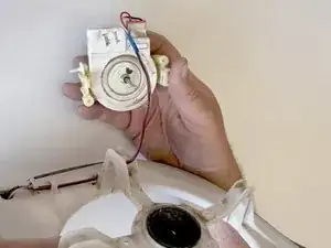 Будьте осторожны, чтобы не повредить проводку, которая всё ещё подключена к мотору.