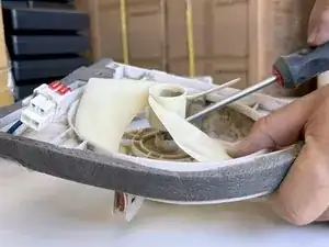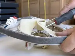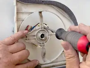 Используйте крестовую отвертку #2, чтобы выкрутить два винта, фиксирующие мотор в сборке мотора.