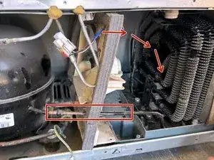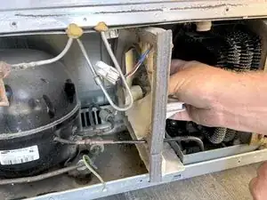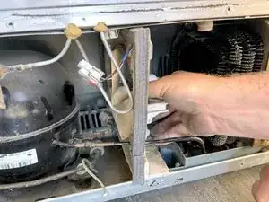 Используйте крестовую отвертку #2, чтобы выкрутить винты, крепящие заднюю панель к холодильнику.