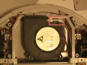 Сожмите белые разъемы, чтобы отключить вентилятор от робота, так же как было сделано с аккумуляторами