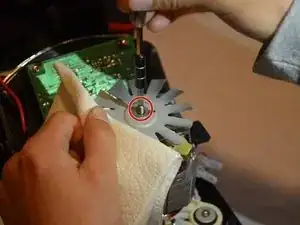 Полотенце или перчатки могут быть полезны при удерживании вентилятора на этом шаге.