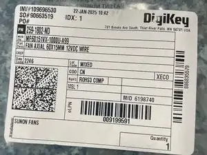 Хорошую замену можно приобрести на www.digikey.com. Номер детали 259-1802-ND. Это вентилятор Sunon более высокого качества, чем заменяемый Hongfei HD-6015L12R. Этот вентилятор подтверждён как продувающий в том же направлении, что и старый.