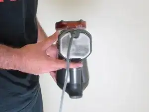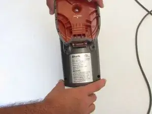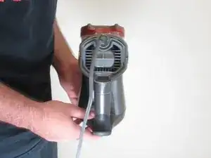 Поставьте пылесос на землю так, чтобы сторона с фильтром была от Вас.