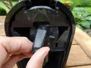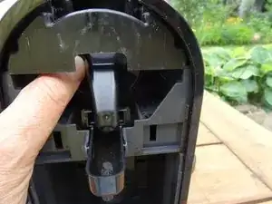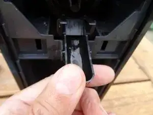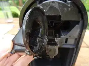 Теперь вы можете извлечь неисправный внутренний носик для кофе. Его фиксирующие язычки, вероятно, сломаны, так что это должно быть довольно просто.