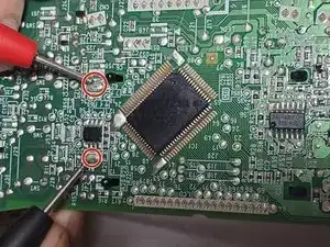 Переверните печатную плату на другую сторону. Найдите точки пайки батареи, как показано на фото.