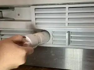 В этом руководстве показано, как заменить водяной фильтр в холодильнике Thermador T30IF800SP. Рекомендуется заменять фильтр каждые шесть месяцев. Холодильник уведомит о необходимости замены сообщением "FILTRCHG" (замена фильтра). Это сообщение можно увидеть, открыв дверь морозильной камеры и посмотрев на маленький экран в верхней части морозильной камеры, рядом с квадратными кнопками с надписями "Alarm" и "Vacation". Хотя холодильник может работать без замены фильтра, этого делать не рекомендуется, так как это может вызвать проблемы в будущем и повлиять на качество образующегося льда.