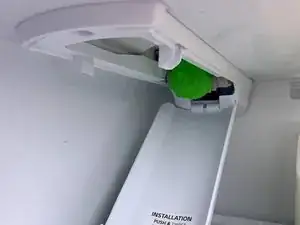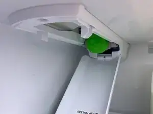 Удалите существующий водяной фильтр. Или, если в Вашем холодильнике ещё нет фильтра, снимите зелёную крышку.