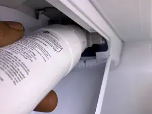 Наклоните приёмник в холодильнике вниз, чтобы фильтр было удобно вставлять.