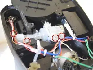 Снимите водяной насос, отрезав два подключённых провода. Подключите новый насос воспользовавшись этим руководством по соединению проводов пайкой, или воспользовавшись этим руководством по пайке соединений, или любым другим способом соединения проводов.