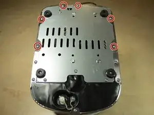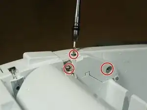 Снимите 4 винта, крепящие лоток для льда к корпусу льдогенератора.
