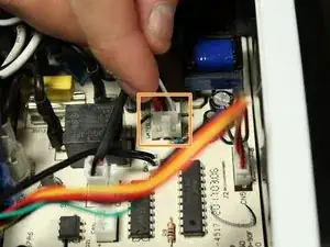 Снимите пластиковую крышку над печатной платой, нажав на защёлку с одной стороны. Может потребоваться инструмент для поддевания.