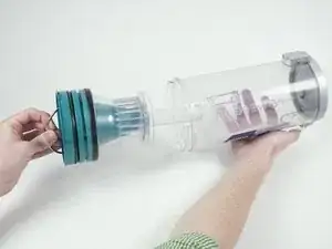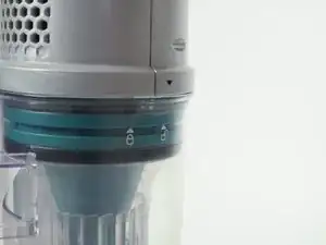 Отделите сборку циклонов от емкости для мусора, вращая детали против часовой стрелки.