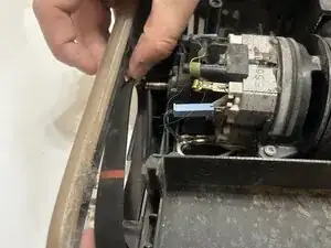 Подсоедините ремень к мотору.