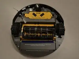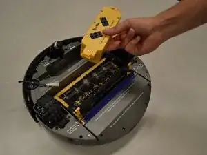 Переверните Roomba вверх дном и поместите его так, чтобы нижняя сторона была открыта. Колеса и щетки должны быть видны.
