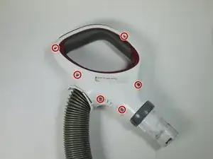 Снимите шесть винтов диаметром 12 мм с помощью отвертки Phillips #2, которые держат ручку пылесоса.