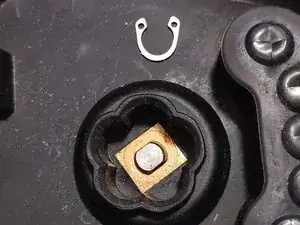 Когда фиксирующее кольцо станет «задёржано», нажмите его на вал, чтобы вернуть в исходное положение. Обратите внимание, что кольцо овальной формы, и это соответствует форме вала.