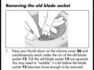 Подденьте край старой втулки ножа и потяните её вверх, одновременно нажимая на приводной вал в центре. Возможно, потребуется немного покачать втулку, чтобы она ослабла.