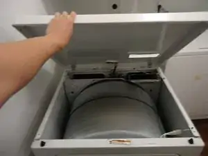 При необходимости выдвиньте сушильную машину, чтобы освободить место для открытия верхней крышки на 90 градусов.