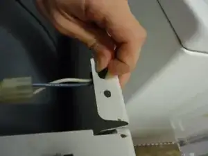 Возьмите новый выключатель дверцы и совместите его разъём с проводной колодкой.