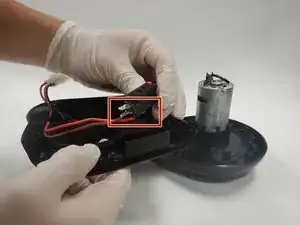 Отключите разъем-просоединитель, соединяющий мотор и батарею, расположенный в отсеке для хранения батареи.
