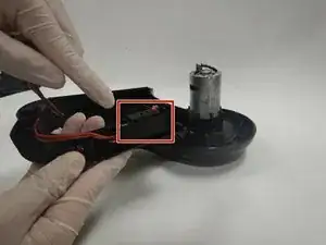 Поднимите крышку батареи вверх, а затем сдвиньте её от мотора, чтобы снять.
