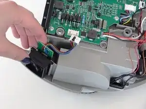 Поднимите отсек щётки до тех пор, пока фиксатор не освободится от bObi Pet. Затем отсоедините разъём платы щётки и отложите его в сторону.