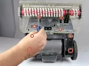Используйте длинную отвертку Philips #2, чтобы удалить 8 винтов с нижней части пылесоса (они также будут указаны на дне пылесоса).