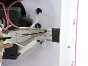 Найдите внутри устройства сборку выключателя с проводами.