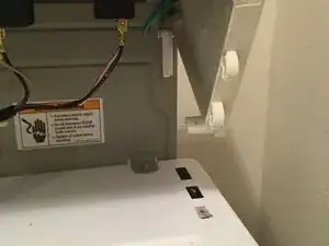 Снимите винты, удерживающие панель управления. По одному винту с каждой стороны. Винты — крестовая отвертка №1.
