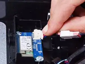Используйте пальцы, чтобы сжать и вытащить разъем Wi-Fi кабеля из его гнезда.
