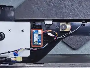 Удалите винты, крепящие Wi-Fi модуль к крышке петли.