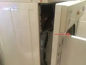 Потяните (возможно, довольно сильно) за боковую часть сушилки слева. Это откроет переднюю панель сушилки.