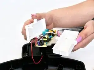 Используя руки, аккуратно разъедините две половины белой крышки аккумулятора, чтобы добраться до аккумулятора