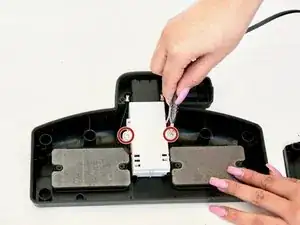 Используя отвертку PH #2, удалите три винта 18 мм на напольном зарядном устройстве.