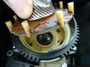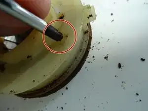 Теперь жернова свободны. Снова сделайте фотографию, затем аккуратно вытащите ось регулятора.
