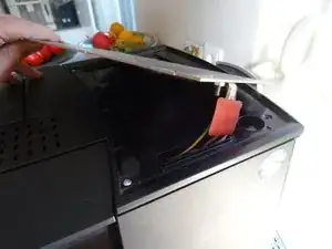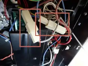 Ослабьте два изолированных плоских разъёма, с помощью которых подключена нагревательная пластина.