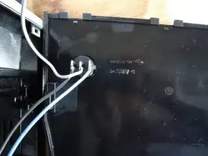 Положите боковую панель рядом с машиной. Пока не снимайте её полностью, кабели переключателя всё ещё подключены.