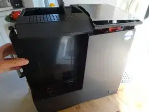 Отодвиньте боковую панель на резервуаре для воды назад примерно на 2 см.