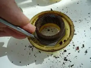 Снова очистите всё. Установите новое кольцо и крышку на место. Жернововое кольцо заменено.