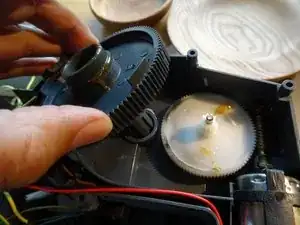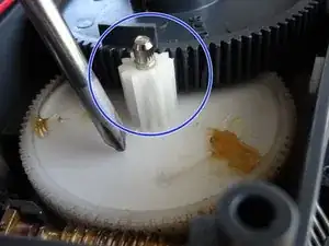 Поднимите серую шестерню — после этого вы сможете снять белую шестерню.